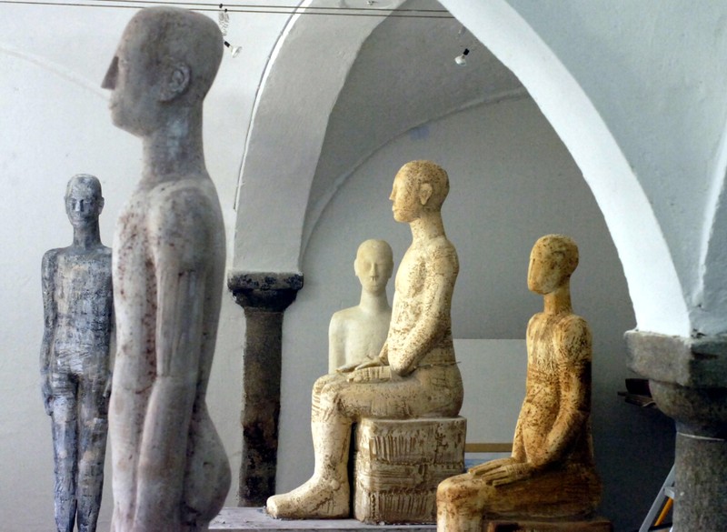 Keramikskulpturen der Kulturwochen „Mitanand“ im Spitalgarten.