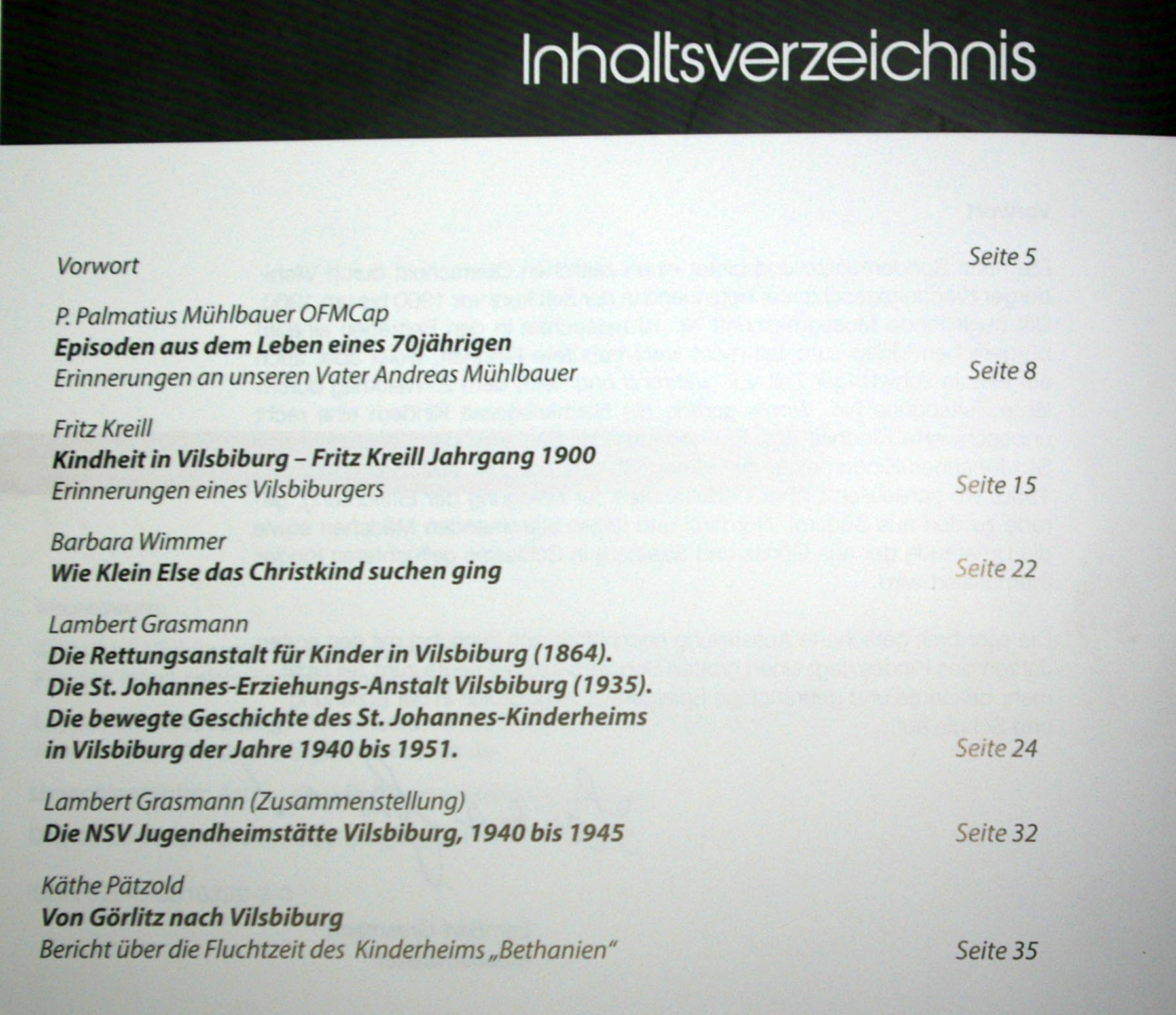 Die neue Sonderausstellung bietet einen zeitlichen Querschnitt durch Vilsbiburger Kindheitsgeschichte, beginnend in der Zeit kurz vor 1900 bis um 1960. Die begleitende Museumsschrift Nr. 19 beleuchtet in den Beiträgen eine im bürgerlichen Milieu zum Teil recht wohl behütete Kindheit, weist aber auch auf eine in schwieriger Zeit vor, während und nach dem 2. Weltkrieg durchlebte Zeitspanne hin. Wobei gerade die Nachkriegszeit Kindern eine recht unbeschwerte Kindheit bot. Ein bedeutender Part wird der Geschichte des St, Johannes-Kinderheims gewidmet. So aus der Zeit zwischen 1940 und 1950, wo schließlich bisher Unbekanntes zur Belegung der Einrichtung, gerade zu den aus Südtirol, Nordtirol und Italien stammenden Mädchen sowie die Umstände der aus Görlitz und Saalberg in Schlesien geflüchteten Kinder, thematisiert wird.